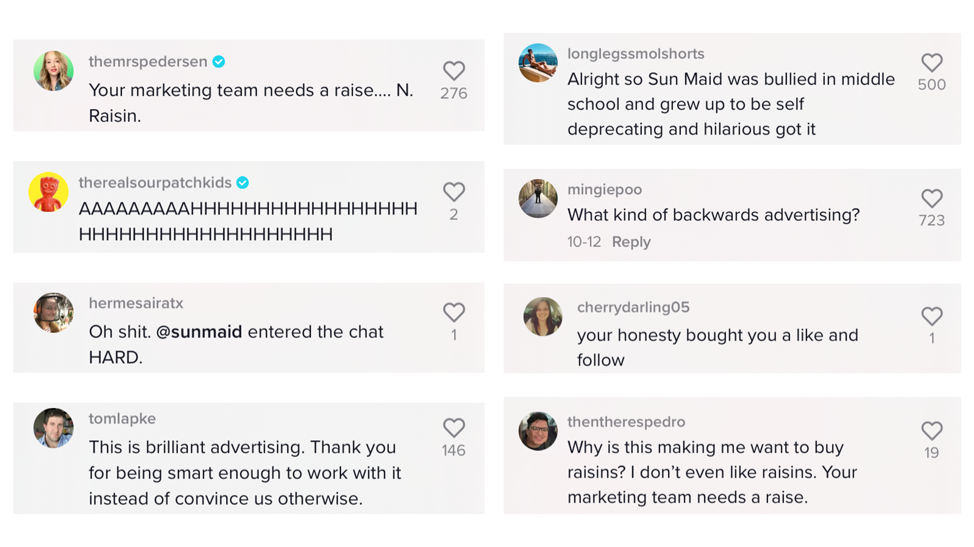 As creative lead, I helped develop the campaign’s strategy, creative directed and wrote copy for all assets, engineered the TikTok video’s audio, created teaser videos and helped concept the raisin house installations and the cleanup kit.